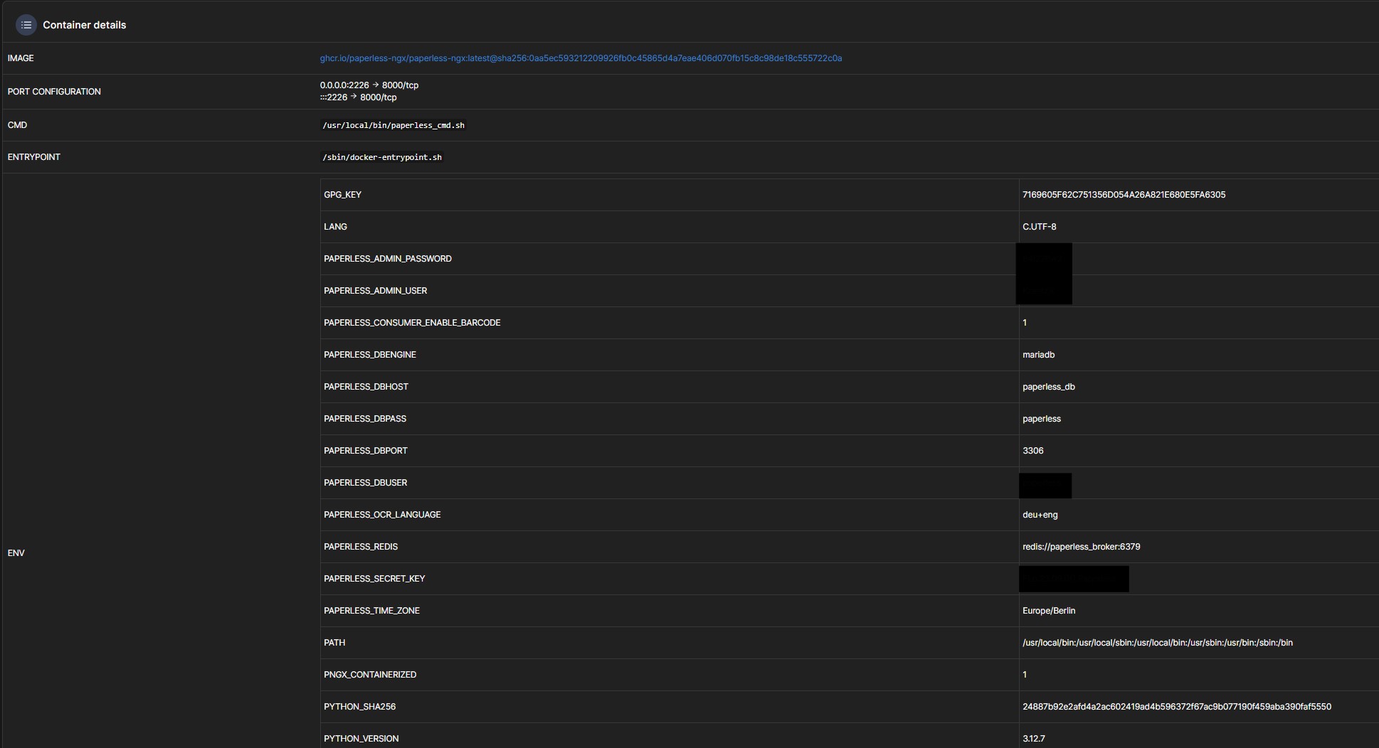 PAPERLESS_CONSUMER_BARCODE_DPI: 600In Portainer zeigt paperless_web die Flag PAPERLESS_CONSUMER_ENABLE_BARCODE: 1 an